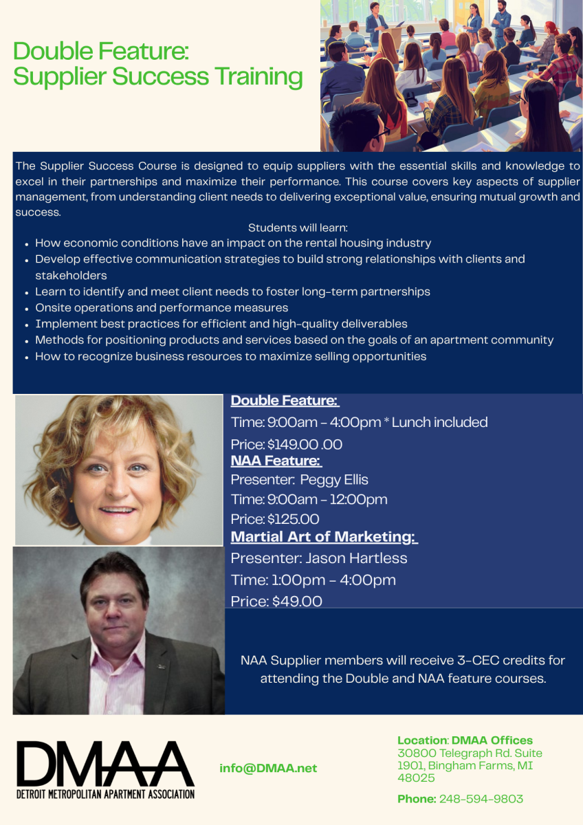 Register through the link: Supplier Success Training - Detroit Metropolitan Apartment Association